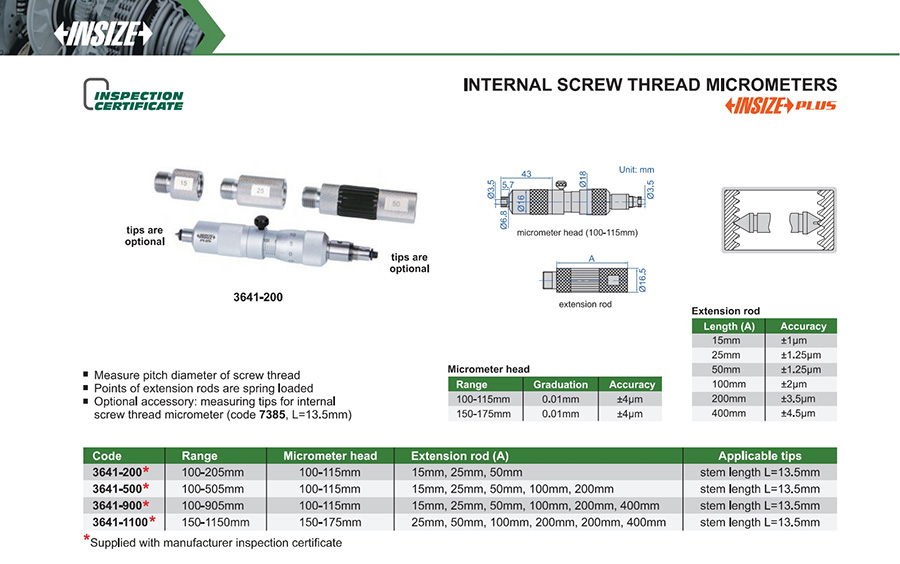 Home / Dimensional Metrology / Measuring Tools / Bore Diameter And Circumference Measuring Tools / Inside Micrometers