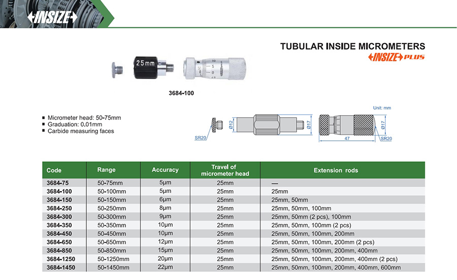 Home / Dimensional Metrology / Measuring Tools / Bore Diameter And Circumference Measuring Tools / Inside Micrometers