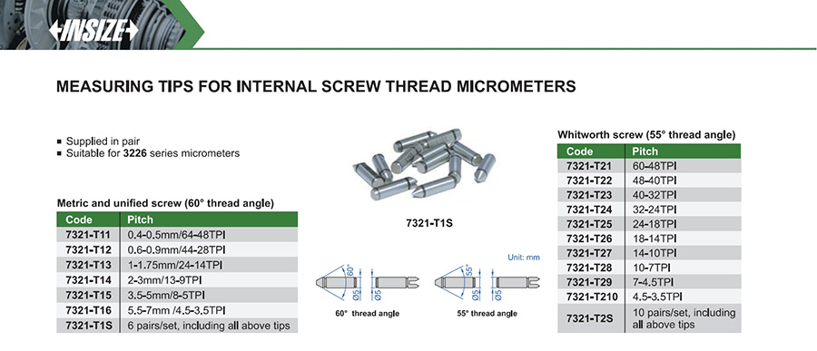 7321-T1S metric and unified screw (60° thread angle) 6 pairs/set, including all above tips