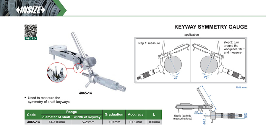 4865-14 diameter of shaft 14-110mm, width of keyway 5-28mm 0.02mm 0.01mm