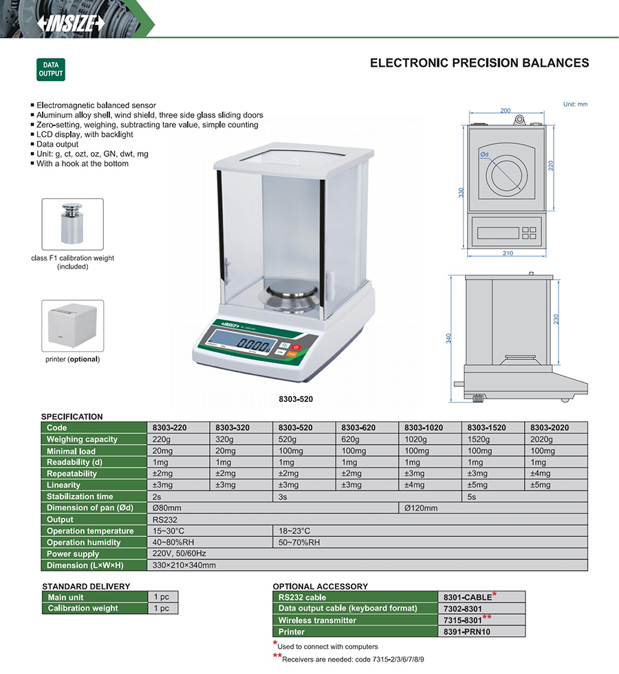 | 8303-320 | 320g | 0.001g | no | Ø80mm |