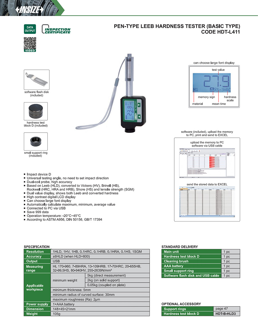 HDT-L411 HL170-960, 7-89HRA, 13-109HRB, 17-70HRC, 20-655HB, 32-99.5HS, 80-940HV, 255-2639N/mm² 1×AAA battery