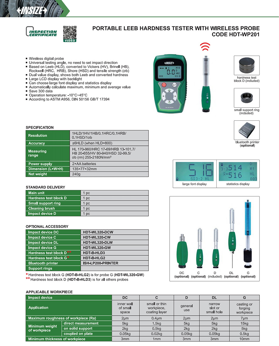 | HDT-WP201 | HL 170-960/HRC 17-69/HRB 13-101.7/ HB 20-655/HV 80-940/HSD 32-99.5/ σb (rm) 255-2180N/mm² | 2×AA batteries |