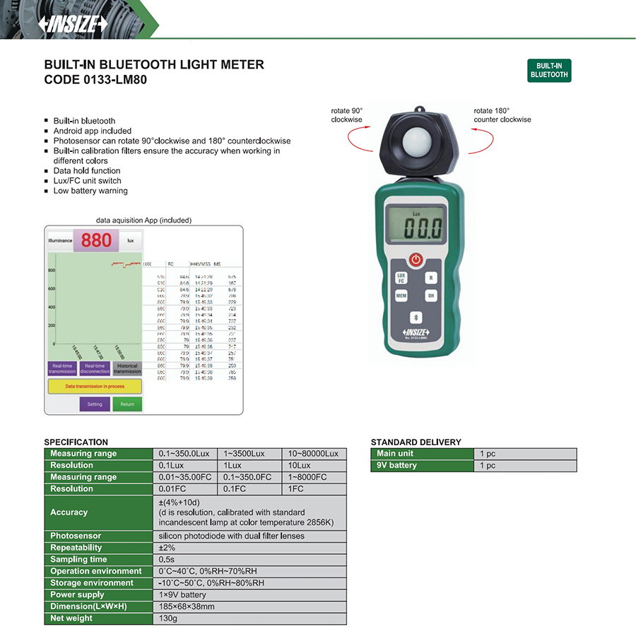 0133-LM80 0.1~80000Lux/0.01~8000FC 0.1Lux/1Lux/10Lux, 0.01FC/0.1FC/1FC