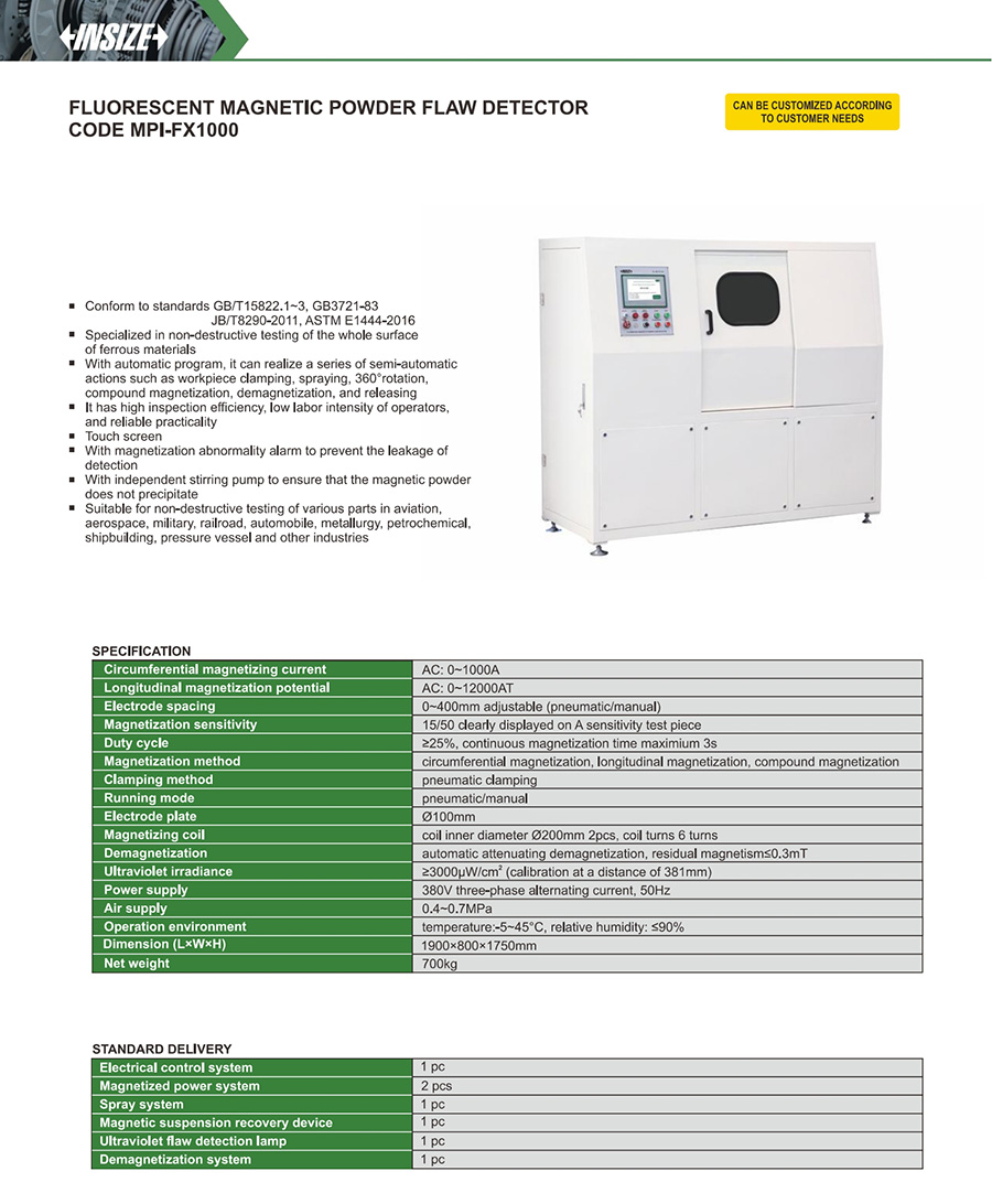 MPI-FX1000 15/50 clearly displayed on A sensitivity test piece 0~400mm adjustable(pneumatic/manual)