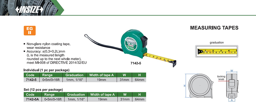 7142-5A 0-5m/0-16ft ±(0.3+0.2L)mm 1mm, 1/16"