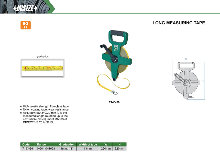 7143-50 0-50m/0-165ft ±(0.3+0.2L)mm 1mm, 1/8"