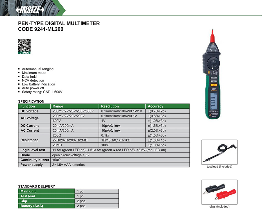 9241-ML200 3 ½ 200mA 200mA 600V 600V ±(0.7%+2d) no no no