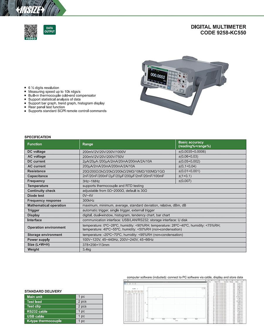 9258-KC550 6 ½ 10A 10A 1000V 750V ±0.0035% yes yes RS232、USB