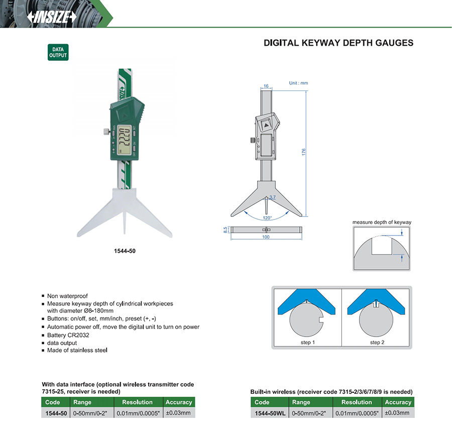 Measure keyway depth of cylindrical workpieces with diameter Ø8-180mm