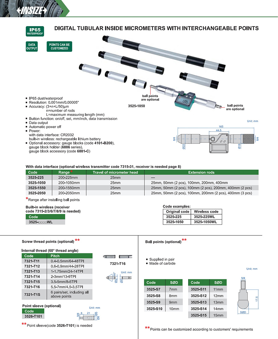 3525-1050 200-1050mm (3+n+L/50)µm 0.001mm/0.00005" with data interface