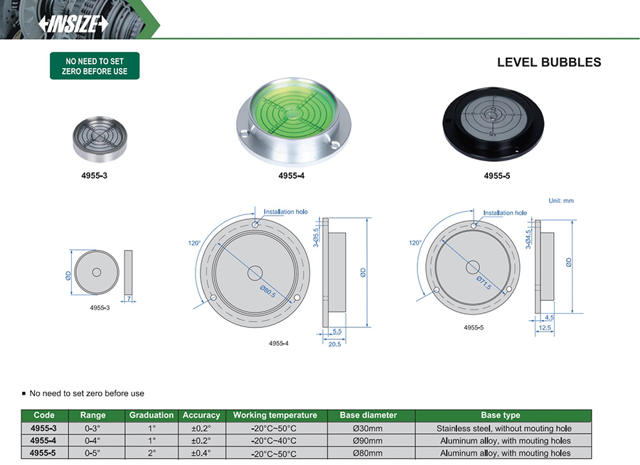 4955-5 0-5° ±0.4° Base diameter:Ø80mm