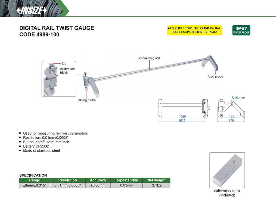 4989-100 ±8mm/±0.315" ±0.06mm 0.01mm/0.0005" 0.03mm