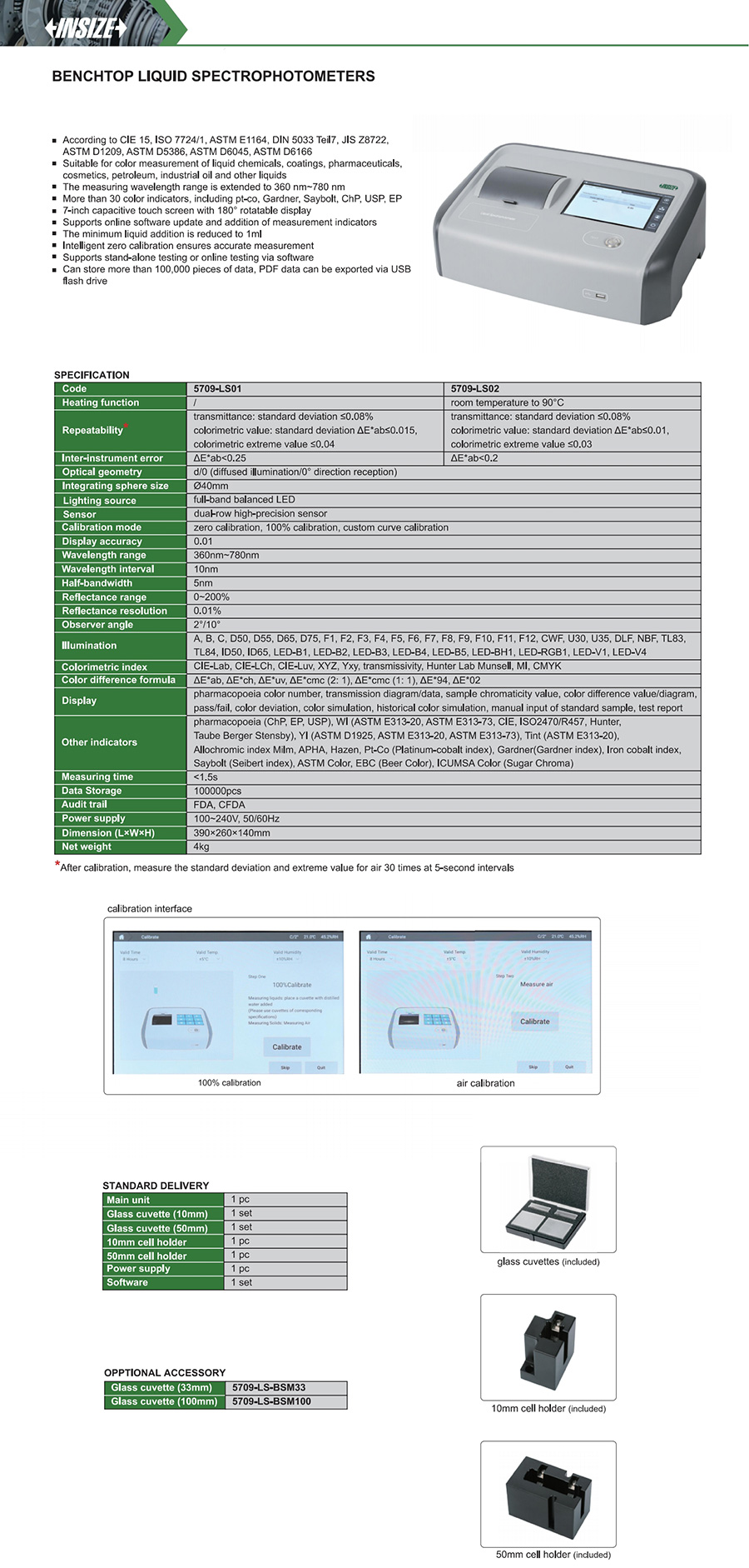 5709-LS02 transmittance: standard deviation ≤0.08%, colorimetric value: standard deviation ΔE*ab≤0.01, colorimetric extreme value ≤0.03 360nm~780nm ΔE*ab<0.2 0~200%