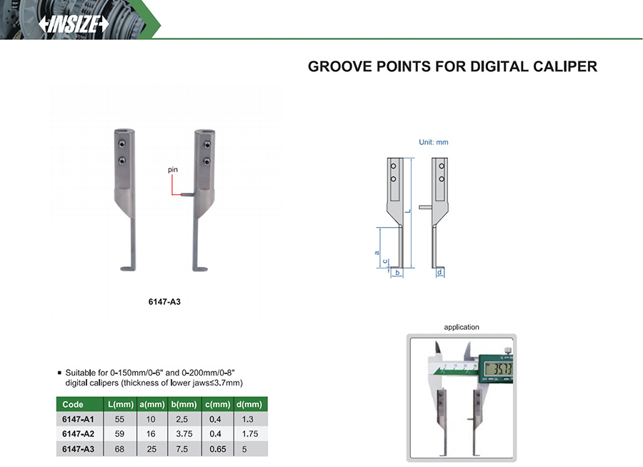 6147-A1 suitable for 0-150mm/0-6" and 0-200mm/0-8" digital calipers (thickness of lower jaws≤3.7mm)