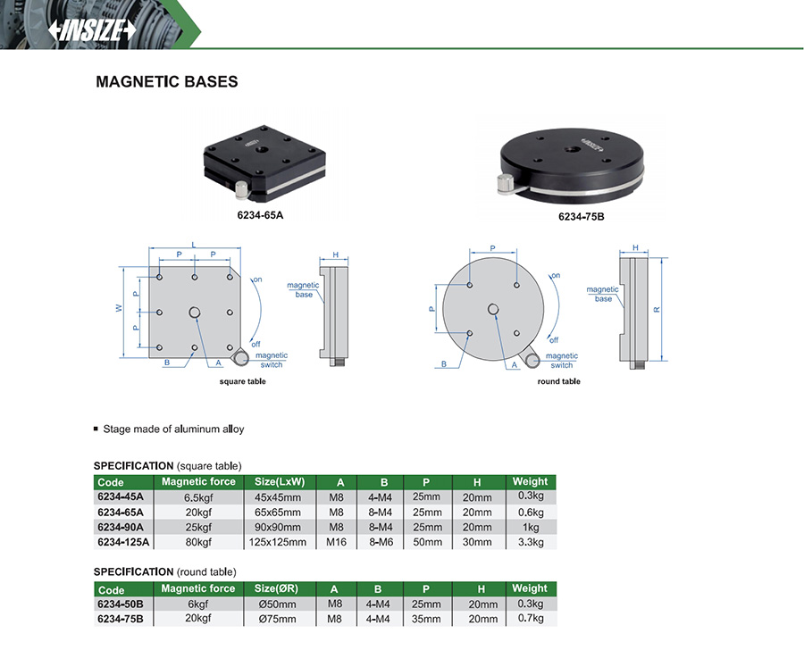 | 6234-45A | square table | 45x45mm | 6.5kgf |