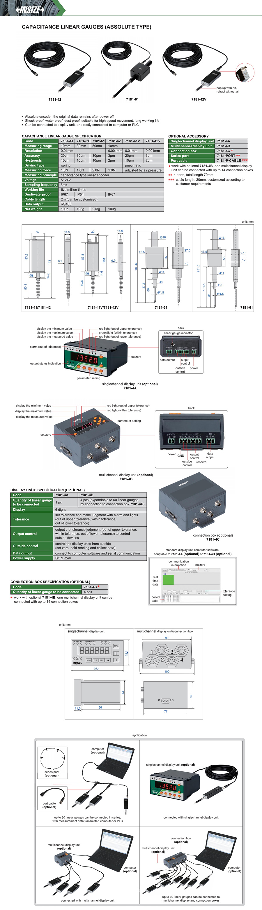 | 7181-41 | Capacitance | 10mm | 20µm | spring |