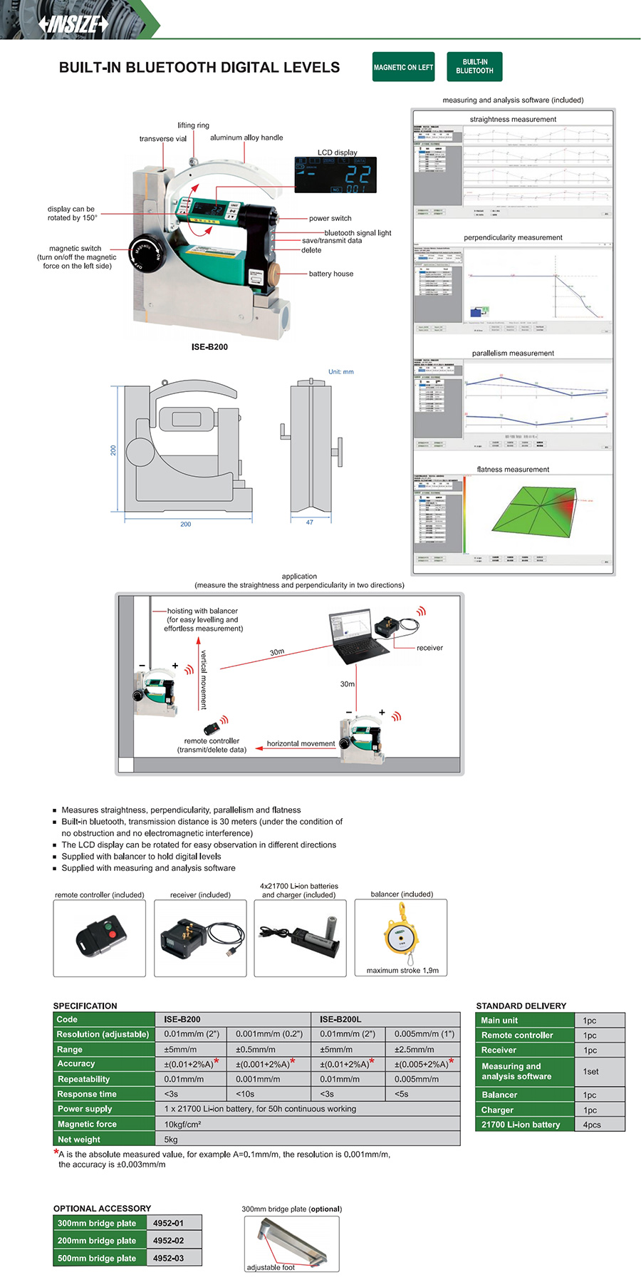 ISE-B200L ±2.5mm/m ±(0.005+2%A) 0.005mm/m (1") 0.005mm/m 10kgf/cm²