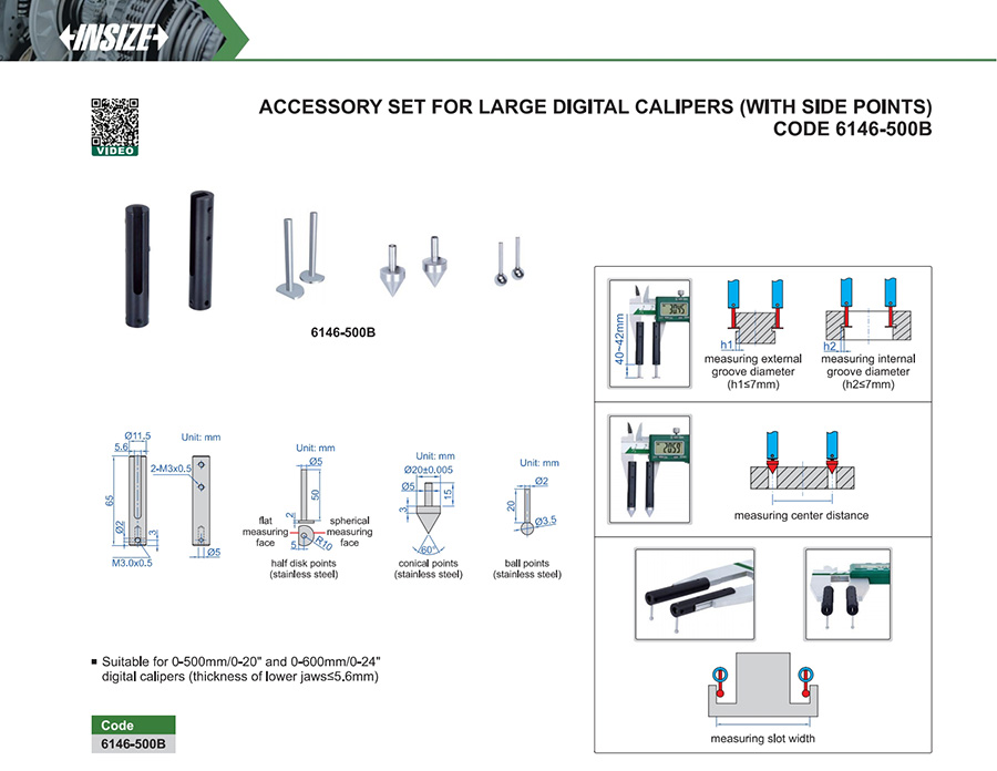 6146-500B suitable for 0-500mm/0-20" and 0-600mm/0-24" digital calipers