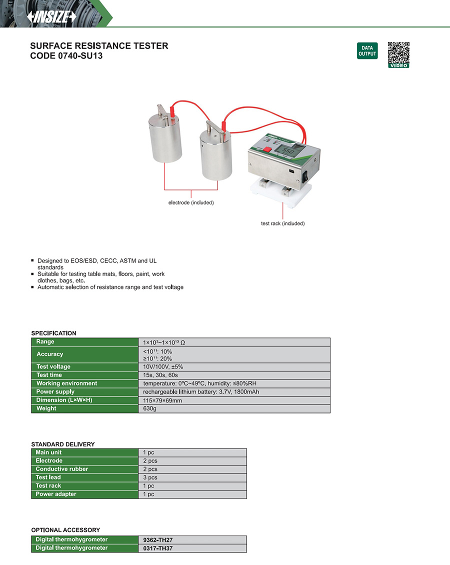 0740-SU13 1×10³~1×10¹³ Ω <10¹¹: 10%, ≥10¹¹: 20% 10V/100V, ±5% 15s, 30s, 60s