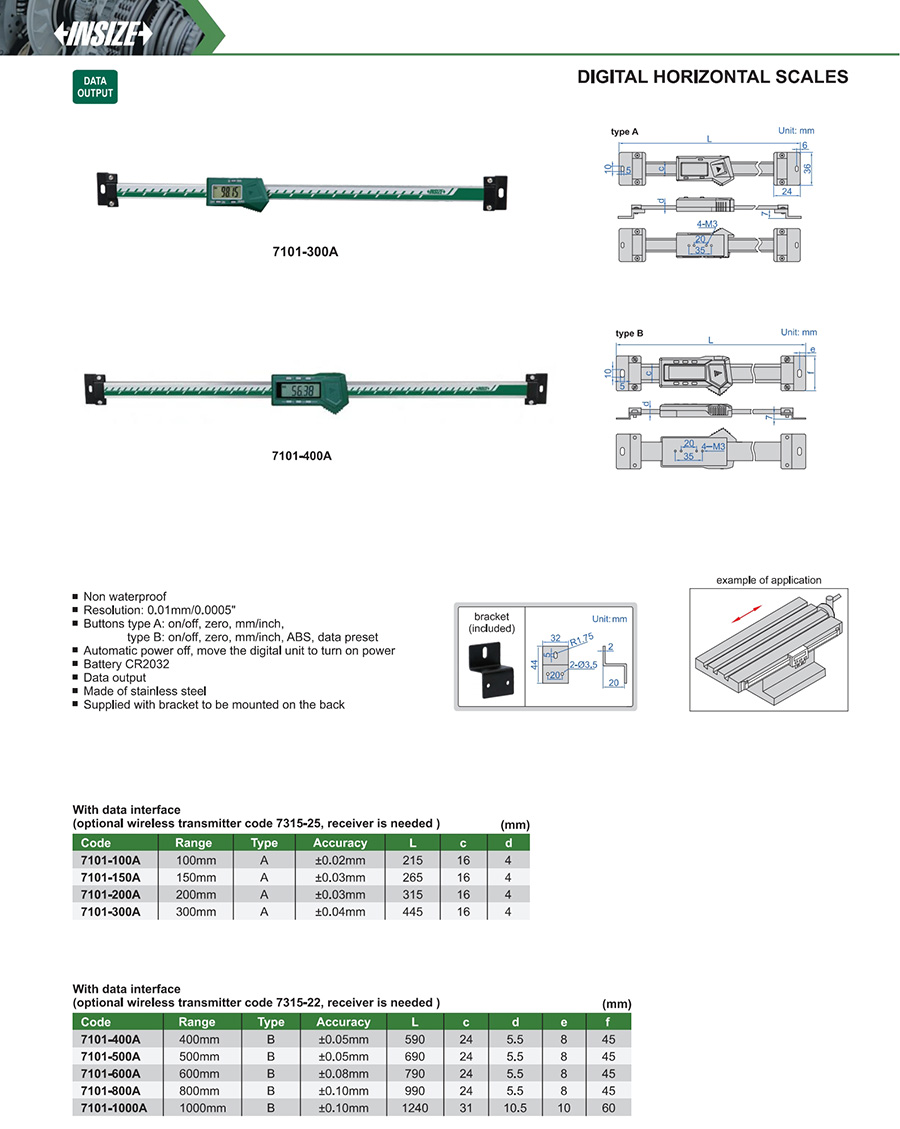 7101-1000A 1000mm ±0.10mm 0.01mm/0.0005"
