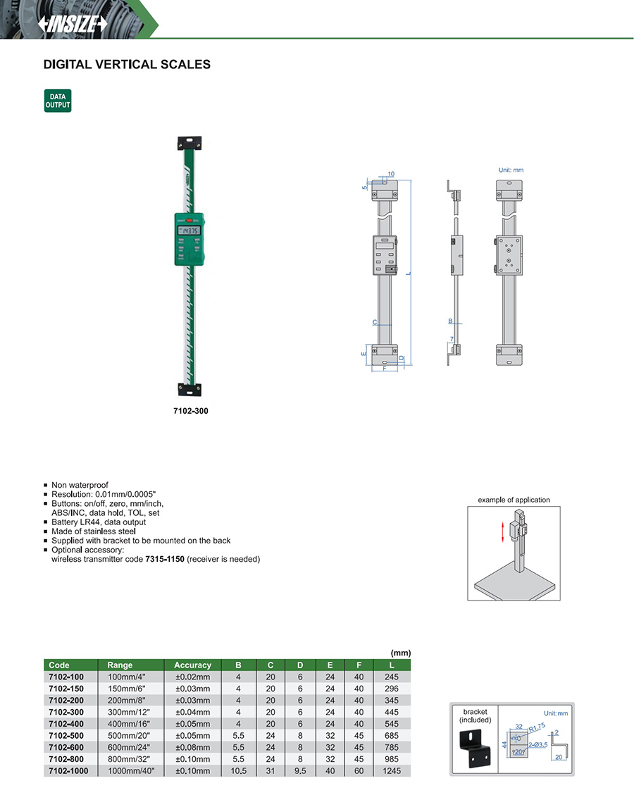 7102-600 600mm/24" ±0.08mm 0.01mm/0.0005"