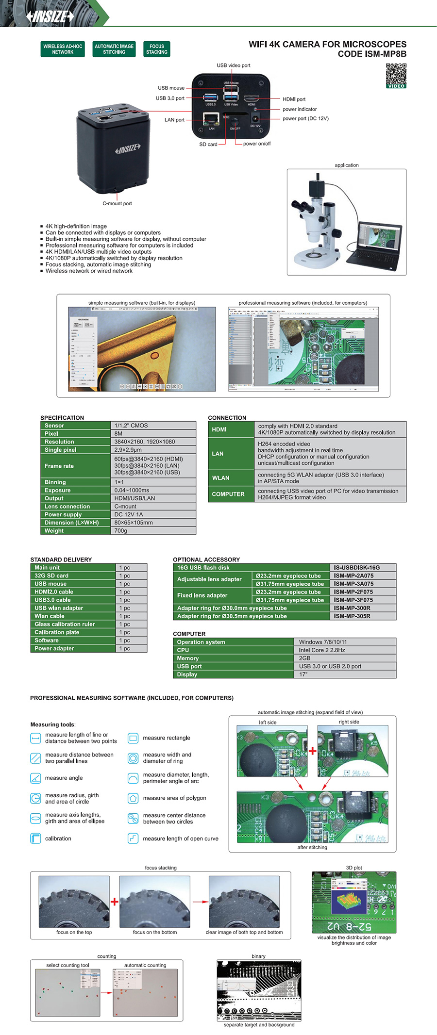 | ISM-MP8B | 1/1.2"cmos | 3840x2160, 1920x1080 | 8M | 60fps@3840x2160(HDMI), 30fps@3840x2160(LAN), 30fps@3840x2160(USB) | 2.9x2.9um |