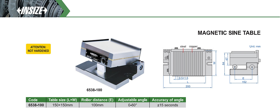Code Accuracy Adjustable angle Table size Roller distance (E)