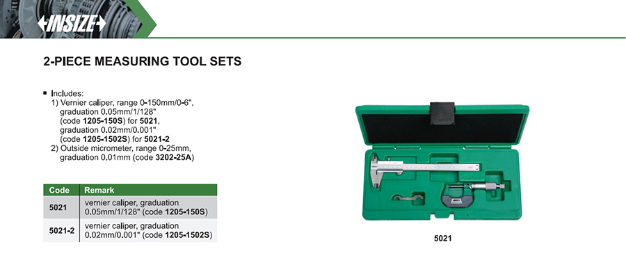 Vernier caliper, range 0-150mm/0-6", graduation 0.05mm/1/128" (code 1205-150S) for 5021, graduation 0.02mm/0.001" (code 1205-1502S) for 5021-2
