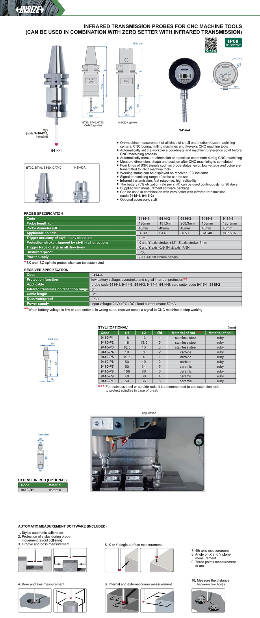 9414-2 X and Y axis stroke: ±12°, Z axis stroke: 5mm X and Y axis: 0.5-1N, Z axis: 7.5N BT40 1µm