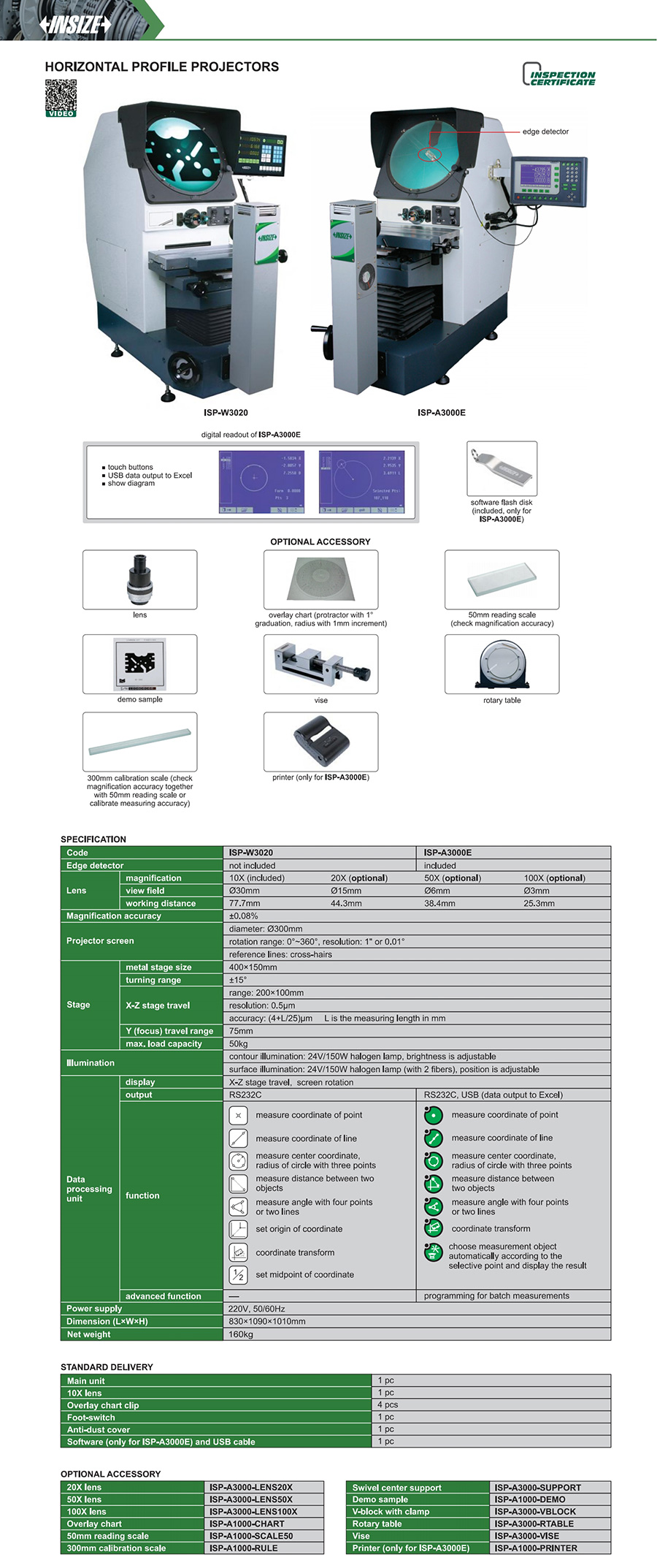 ISP-W3020 horizontal 200×100mm (4+L/25)µm 0.5µm not included Ø300mm inverted image