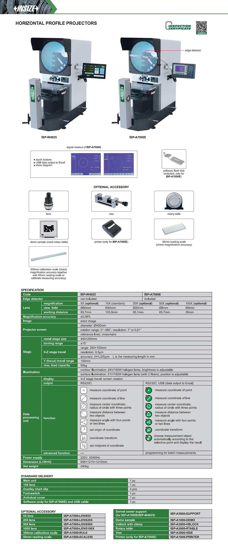 ISP-W4025 horizontal 250×150mm (4+L/25)µm 0.5µm not included Ø400mm erect image