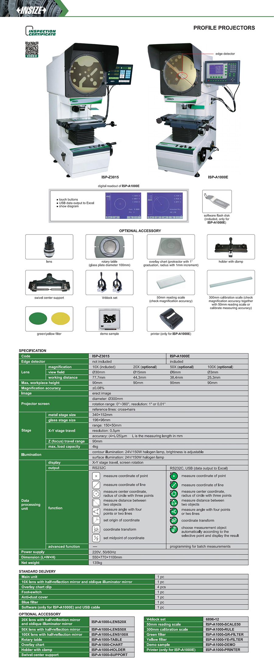 ISP-Z3015 vertical 150×50mm (4+L/25)µm 0.5µm not included Ø300mm erect image