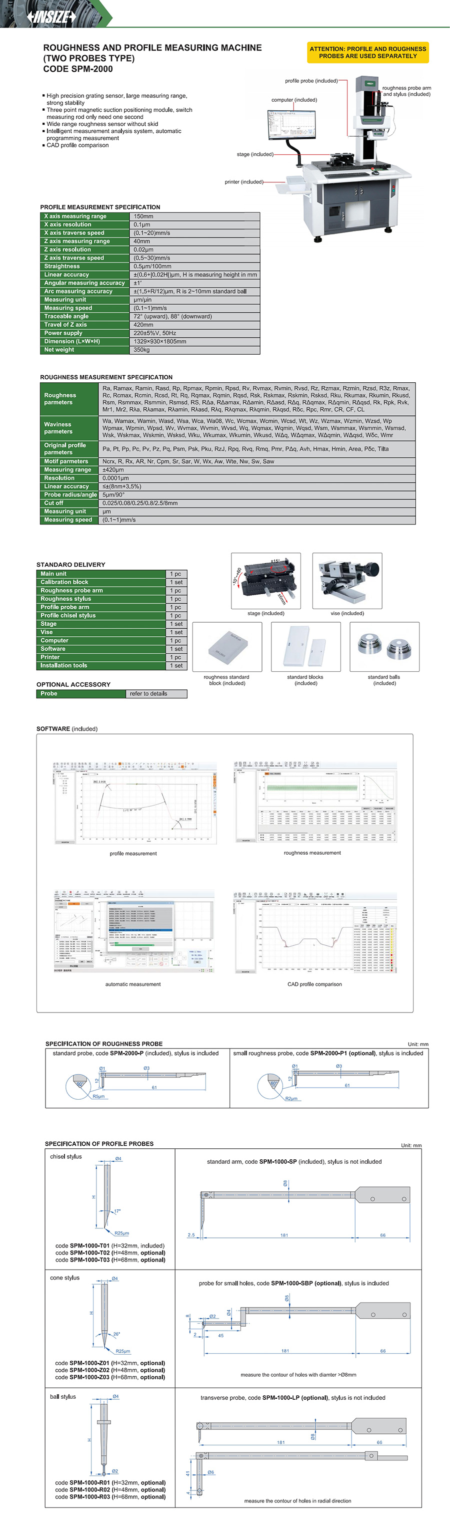 Code X axis measuring range Z axis measuring range Travel of Z axis Roughness