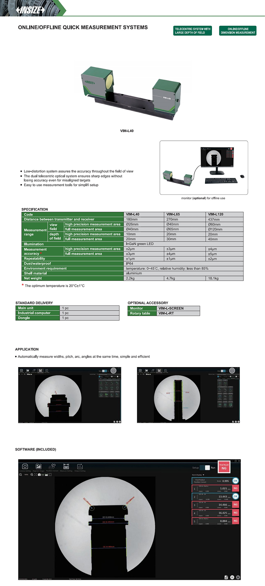 VIM-L40 view field:Ø26mm/Ø40mm;depth of field:10mm/20mm ±2μm/±3μm ±1μm