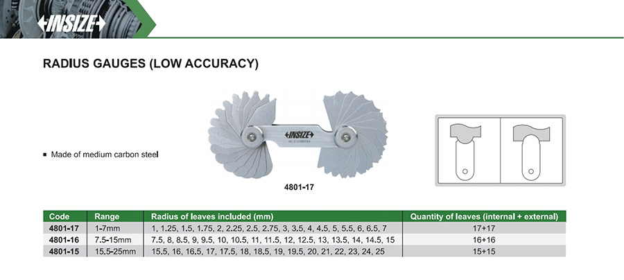 | 4801-15 | 15.5-25mm | 15.5, 16, 16.5, 17, 17.5, 18, 18.5, 19, 19.5, 20, 21, 22, 23, 24, 25 |