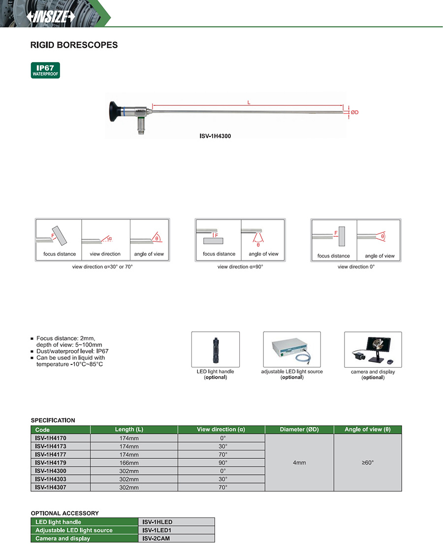 | ISV-1H4300 | rigid | 0° | 4mm | 302mm | ≥60° |