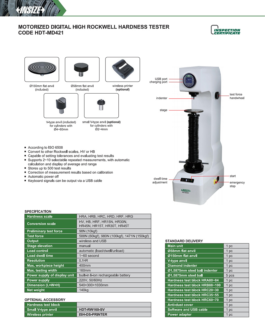HDT-MD421 0.1HR automatic (load/dwell/unload) 400mm 160mm HRA, HRB, HRC, HRD, HRF, HRG