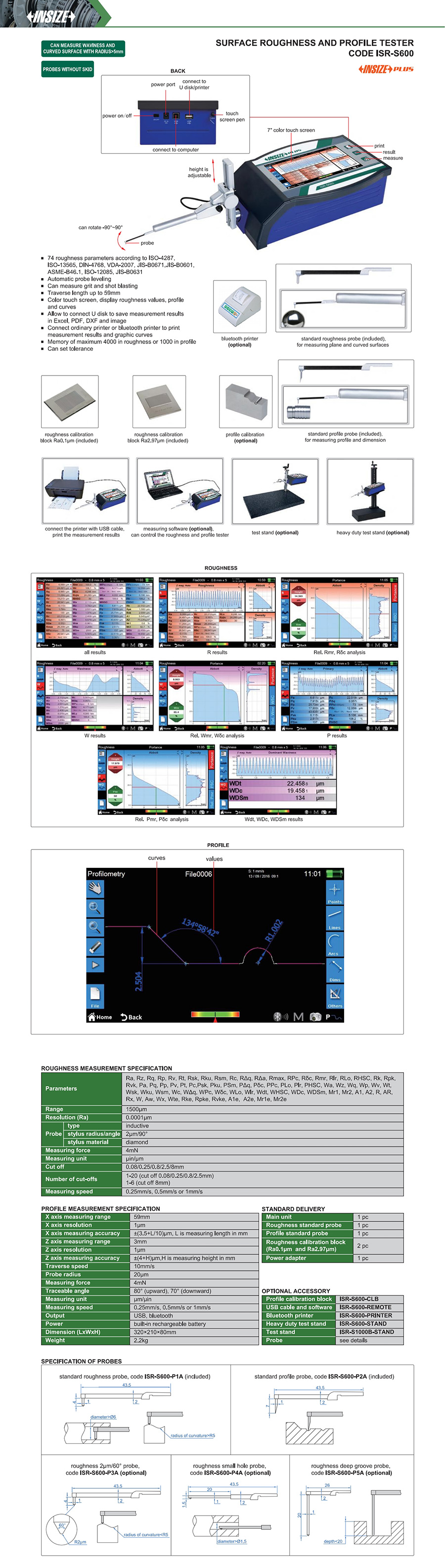 | ISR-S600 | 1500µm | 4mN | 2µm/90° | USB and bluetooth |