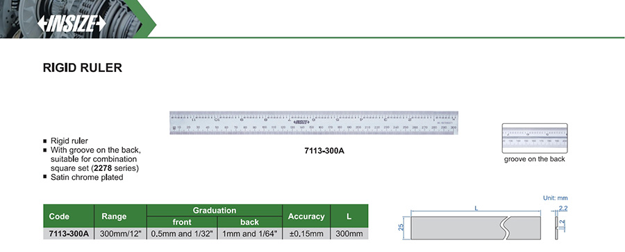 7113-300A 300mm/12" ±0.15mm 0.5mm, 1mm, 1/32", 1/64"