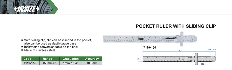 7119-150 150mm/6" ±0.3mm 1mm, 1/64"