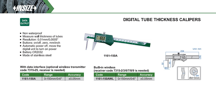 1161-150AWL 0-150mm/0-6" ±0.05mm 0.01mm/0.0005" built-in wireless