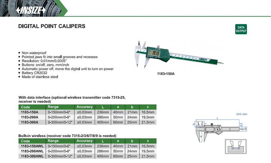 1183-300AWL 0-300mm/0-12" ±0.03mm 0.01mm/0.0005" built-in wireless