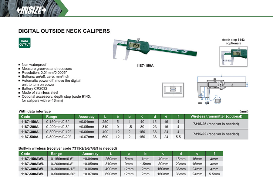 1187-150A 0-150mm/0-6" ±0.04mm 0.01mm/0.0005" with data interface