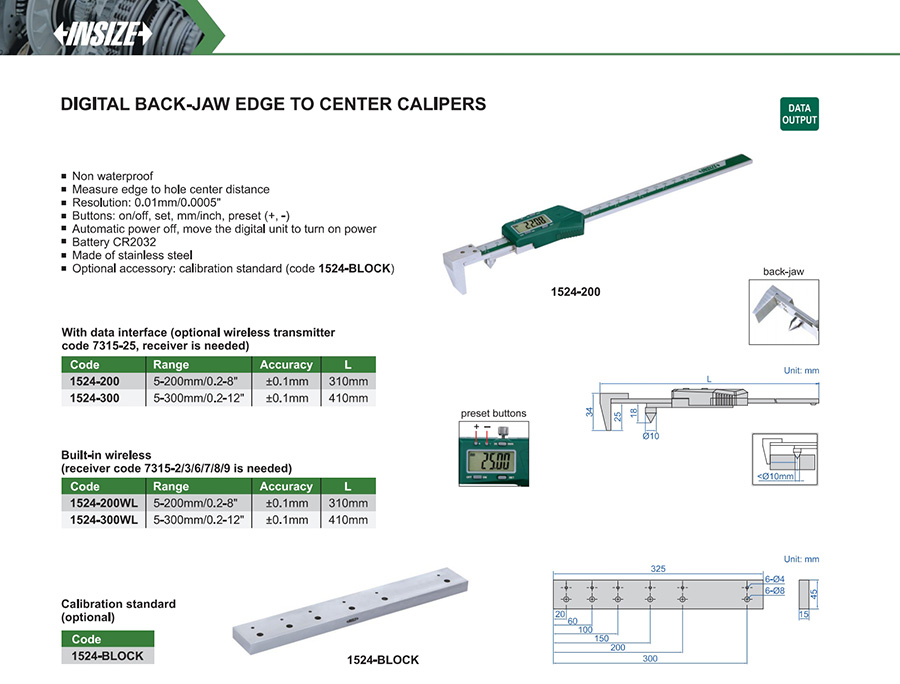 1524-200WL 5-200mm/0.2-8" ±0.1mm 0.01mm/0.0005" built-in wireless