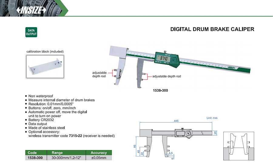 1538-300 30-300mm/1.2-12" ±0.05mm 0.01mm/0.0005" with data interface