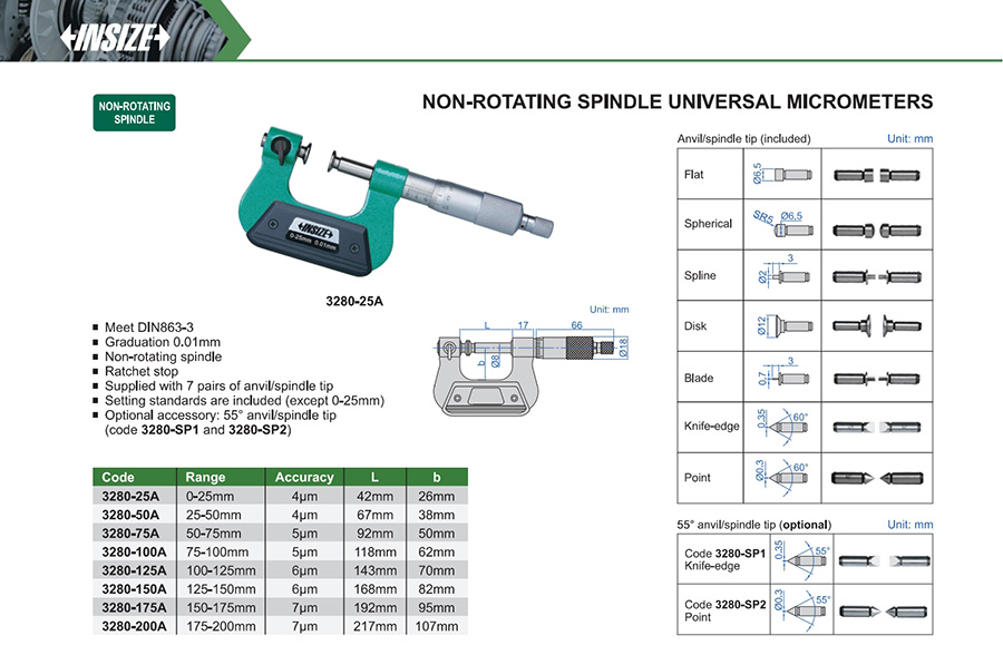 3280-25A 0-25mm 4μm 0.01mm