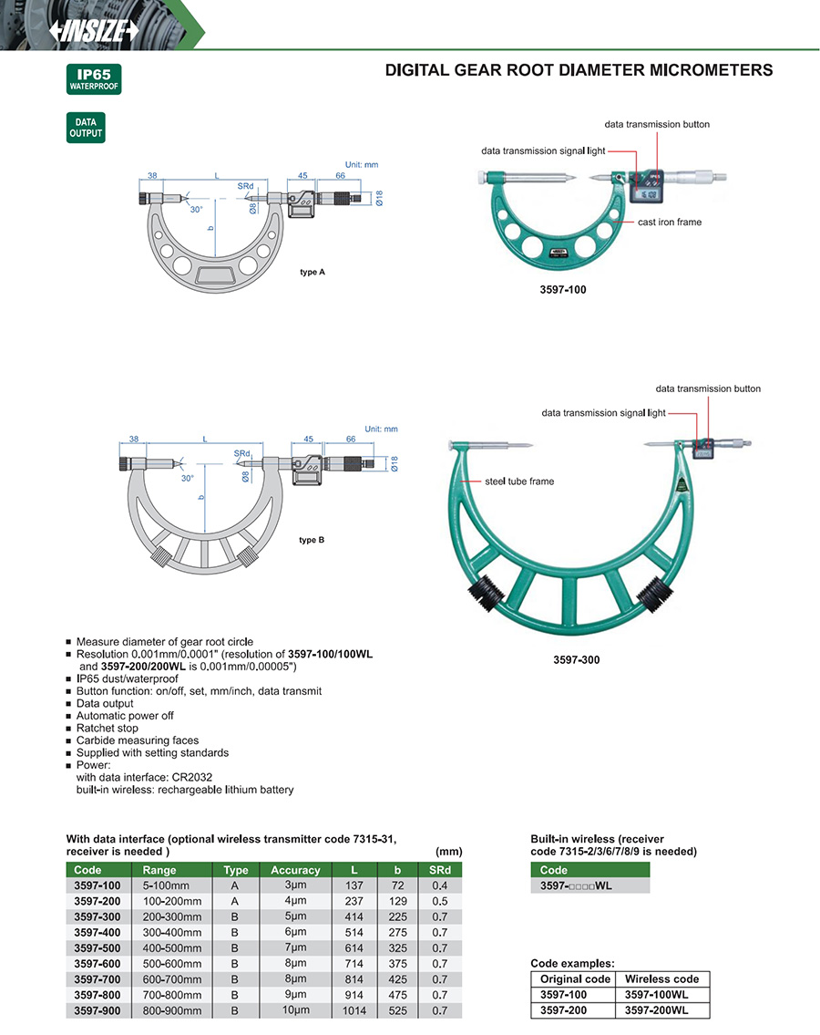 3597-200WL 100-200mm 4μm 0.001mm/0.00005" built-in wireless