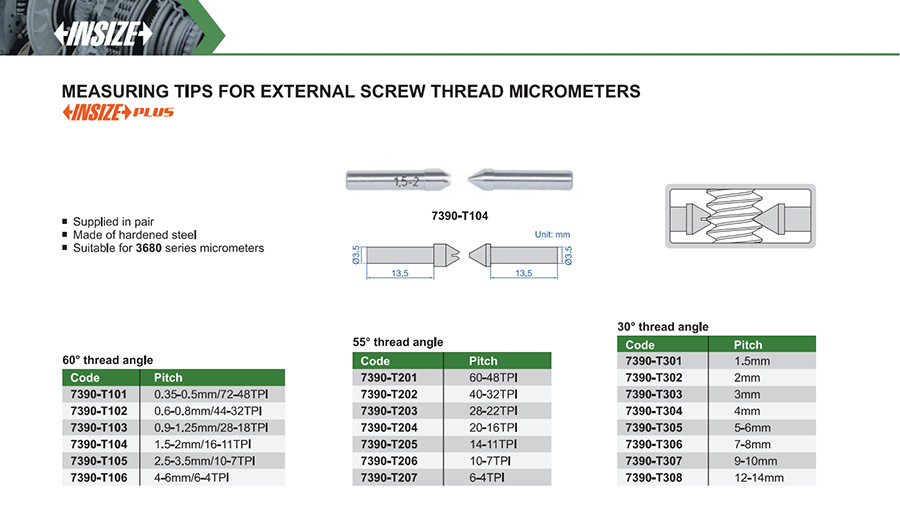 7390-T104 60° thread angle 1.5-2mm/16-11TPI