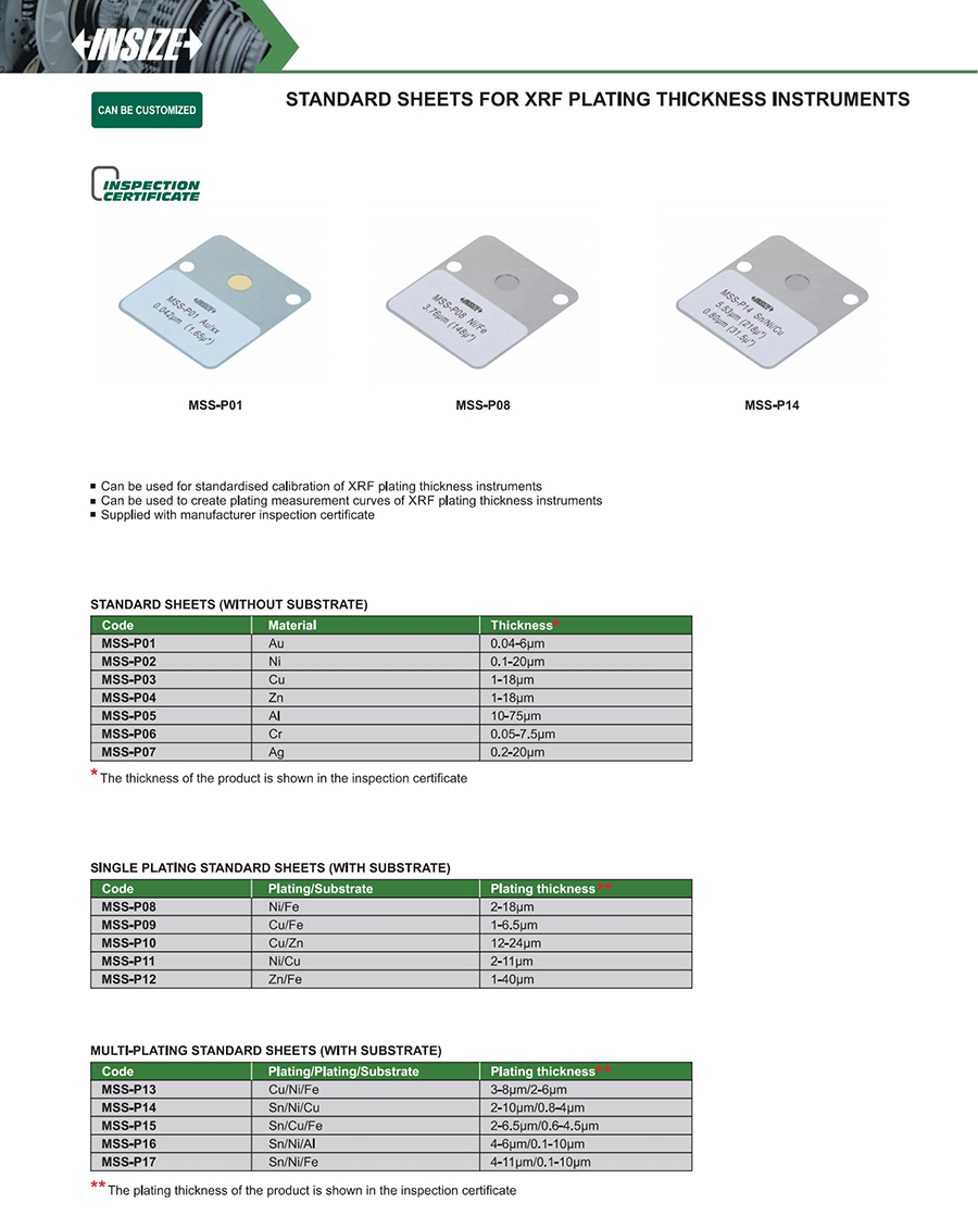 MSS-P Series standard sheets for xrf plating thickness instruments